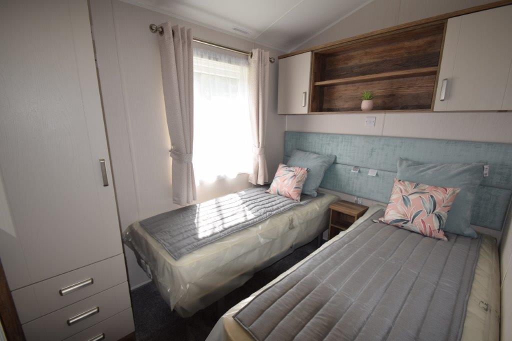 The second bedroom is a good sized twin with wardrobe, drawer and bedside storage.